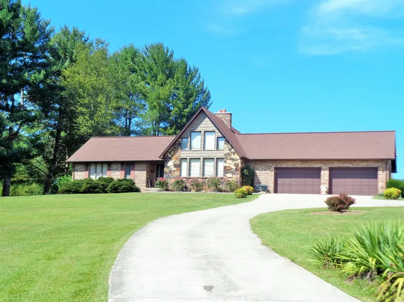 Nice Brick & Stone Ranch with 1830 SF on East 80 in London, KY with Unfinished Basement. This One is Nestled Back off Main Rd and Backs up to Farmland on 2.25 Acres.Great Room with Beautiful Stone Floor to Ceiling Fireplace With Natural Gas Logs. Gleaming Hardwood Flooring and Tile throughout. Bonus Loft Area with Balcony Overlooking Great Room. Eat In Kitchen Has Lots of Counter Space and Cabinetry with Wrap Around Bar Seating and dining area. Kitchen Appliances Stay with home. Entrance Foyer, Home offers 3 Bedrooms and 1.5 Baths. Full Unfinished Basement with Poured Walls petitioned into 2 rooms. Huge back patio area and an oversize 2 car garage. Nicely Landscaped and Concrete Drive & Sidewalks. Storage Building. This one has great views front and back.Flower Garden Area.