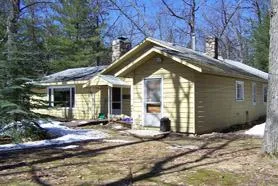 LOTS OF CHARACTER – charming 3 bedroom, 1 ½ bath, maple floors, wide plank knotty pine for wall covering, cathedral ceiling in the living room, stained glass widows, large curved archways, beautifully crafted cut stone fireplace, detached 2 car garage, 2.25 Acres, wonderful wooded setting, walking distance to the public beaches on loon lake and island lake $ 116,000 A-2149