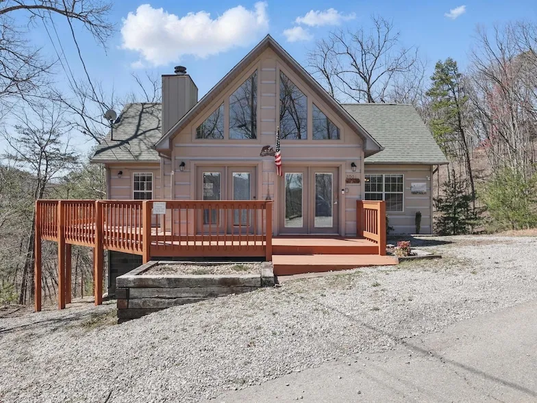 ** BACK ON THE MARKET AT NO FAULT OF THE SELLERS!!** Tucked away on 2.26 wooded acres, this exceptional property features not one, but TWO captivating cabins, perfectly balancing comfort, seclusion, and rental income potential. Ideally located just 5 miles from The Island in Pigeon Forge, 7 miles from Tanger Outlets, and under 20 miles from the Gatlinburg Strip and Ober Gatlinburg, this property offers easy access to all the Smoky Mountains' top attractions. Main Cabin (2001):This 3-bedroom, 2-bathroom cabin (on a two bedroom septic) exudes rustic elegance and modern comfort. The main level features a luxurious primary bedroom with an en-suite bath and jacuzzi tub for ultimate relaxation. An open loft area adds charm, while the upstairs offers two additional bedrooms and another full bath. Soaring cathedral ceilings, vinyl plank flooring, and an electric fireplace create a warm, inviting...