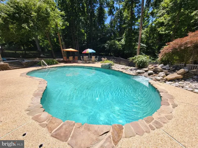WELCOME HOME! This Beautiful home sits on 2 + private, tree-lined acres in the sought after Community of "Tall Oaks". This custom built home is One-of-A- kind! 2 car garage with lots of extra parking. Features a first floor owner suite bedroom with it's very own beautiful brick fireplace, full bath and separate entrance over looking the breath taking backyard oasis! In Ground Pool, features a Waterfall and in-water bench for relaxation. Tons of perfectly laid hardscaping, large patio great for all your summer cookouts and entertaining. Eat-in kitchen offers a large Island, lots of counter space, open floor layout, skylights and large windows offer great natural lighting. Separate dinning room, additional sitting-room. Stunning Four Seasons room overlooking the flat tree lined back yard. Perfect for your morning Coffee or evening glass of Wine. Large living room with hardwood floors and light brick wood burning fireplace! Fully finished walk-out basement with rec room, wet bar and 2 additional rooms! Also features a large Koi pond with two waterfalls - Rare Butterfly Koi fish are Included.. Located close to local Marinas serving the Chesapeake bay. Only 45 minutes to D.C, 30 minutes to Andrew Air Force Base, 25 minutes to Annapolis. Schedule your showing today, this home will not last!