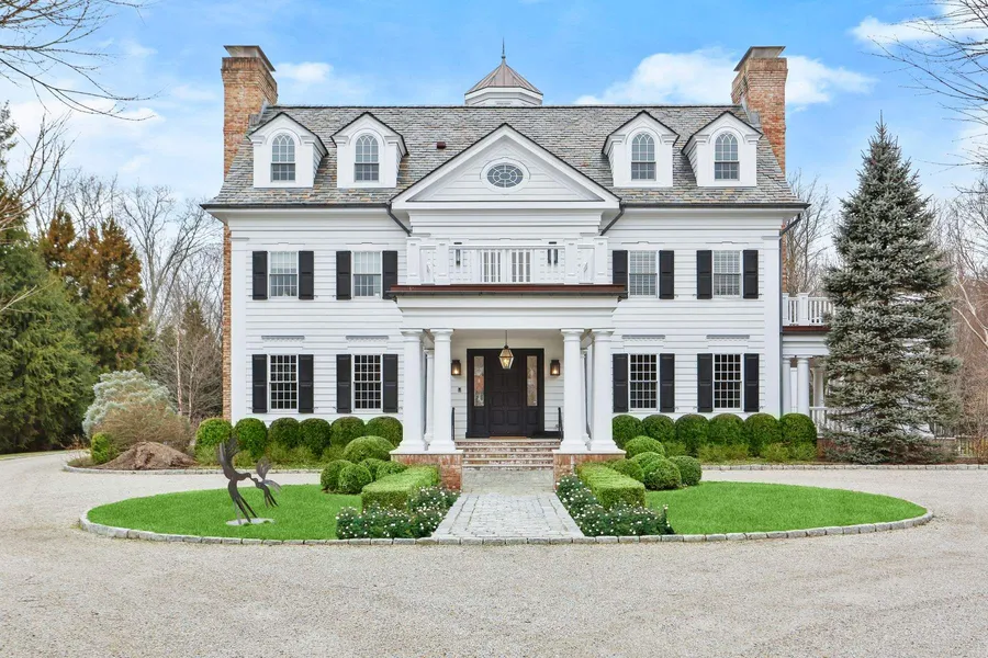 Majestic Richard Granoff designed stone and clapboard Georgian manor perfectly situated on 2+ level landscaped acres on a gated quiet lane. Stunning verandahs & balconies overlook gardens, fountains, glorious terraces, pool with spa and waterfall. Beautifully proportioned light-filled rooms, high ceilings, stunning architectural detail and impeccable craftsmanship are featured throughout. Exquisite 16,000 square feet offers both sophisticated formal and family spaces making it ideal for work and play. Magnificently scaled formal rooms, mahogany library/office. Spectacular Christopher Peacock kitchen with Calcutta marble double islands is highlighted by the 14.6' x 26' eat in breakfast room, vaulted media/playrooms, 9 fireplaces, 3 powder rooms, 7 bedrooms, all en-suite.