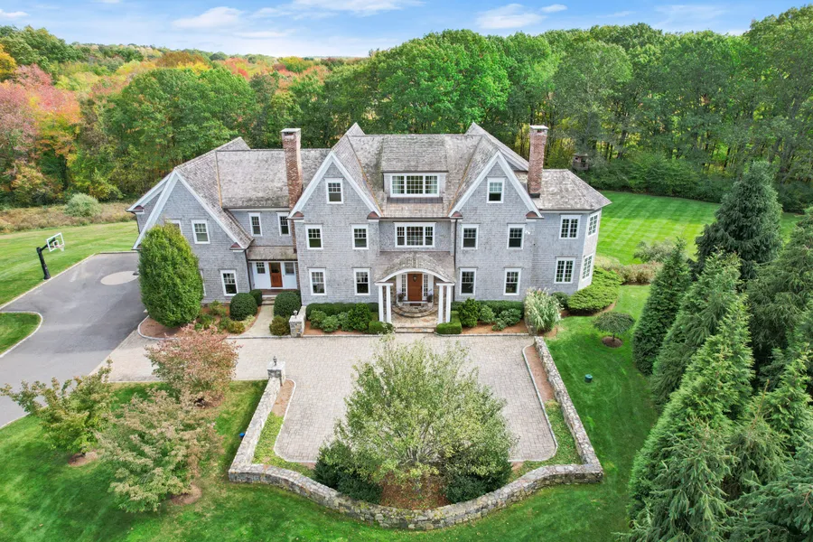 Uncompromising beauty and exceptional craftsmanship intersect creating a timeless home that captivates at every turn. Offering 6 Bedrooms, 8 Full / 2 Half bathrooms and 10,000 SF of living space, this enchanting home embodies the true spirit of the modern lifestyle providing comfortable spaces to work, play and relax. Artfully designed utilizing extensive millwork and the finest quality finishes, every inch of the home has been meticulously curated with awe-inspiring details while maintaining a casual elegance that is not too precious to be enjoyed. The stone courtyard welcomes you to the property and upon entering the home, you are greeted by a gracious sweeping staircase and stunning Brittany block patterned floors, setting the tone that something truly special awaits. Arched doorways connect you to the formal spaces which include the dining and living rooms, both enveloped in intricate moldings and anchored by absolute black marble fireplaces, the sunroom customized with a granite bar and panel moldings in pitch black paint creating a bold yet intimate setting and the library encased in 100% custom quarter sawn White Oak paneling, built in bookshelves and beverage center. Impressive gourmet kitchen showcasing commercial grade appliances including Sub Zero refrigerator/freezer, 48' inch 6 burner Wolf oven, 2 Bosch dishwashers and dry bar with microwave, generous food pantry, plentiful custom cabinets painted in Ancient Ivory with under mount and up lighting, center island breakfast bar, and sumptuous Pretoria White Granite counters complimented by a custom mosaic tile backsplash with Carrera pencil border. This generous space connects seamlessly to the family room offering soaring ceilings, walls of glass and a field stone fireplace, the bluestone terrace, the cherry wood butler's pantry styled with smoked glass backsplash, Uline wine cooler and icemaker, custom mudroom, two nicely appointed powder rooms and the convenience of a working elevator. The second floor is all about achieving peace and serenity. Indulgent Primary bedroom suite offers generous sleeping quarters with dramatic cathedral ceilings and ambient up-lighting, glass enclosed sitting room with white marble fireplace and beverage center, two luxurious marble bathrooms and a massive walk in closet and dressing area to be envied. Four sizable guest rooms, all featuring sumptuous en-suite baths (3 are marble, one natural stone), 3 with walk in closets (one is double wall to wall) and a bonus recreational space. The third floor provides a fully finished section currently functioning as a gaming lair and additional sleeping quarters, a fabulous full marble bathroom ideal for overflow guests and additional storage spaces. The lower level of the home offers an outstanding media room with mounted projector and large screen, 5th guest bedroom with tray ceiling, walk in closet and full sized windows, full bathroom with mosaic tile shower enclosure, gym and a cheerful multi-purpose rec room with stone fireplace, wet bar, wall of glass with direct access to the backyard and plentiful storage. The soul of the home is tempered by Geothermal heating and cooling, providing energy that is renewable, reliable and cost efficient with average heating / cooling costs around $800/month. Sited on over two acres of lush yard, abutting a meadow and conservation land, this home boasts breathtaking views, privacy and plenty of space for recreational activities, including a possible pool site. Marquis location nestled among an enclave of three grand homes and just minutes to Rolling Hills Country Club, Ambler Farm, Town Center, Metro North Train and Award Winning Public Schools. Enjoy a quintessential New England lifestyle with four glorious seasons to enjoy. Be part of a true community with small town feel and something for everyone, while remaining in close proximity to vibrant NYC. Who ever said you can't have it all clearly doesn't live here.