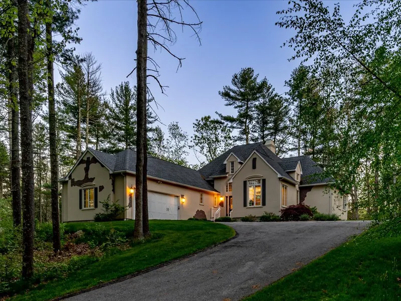 This majestic 4-bed, 2 full bath home was built in 2014-15 in the style of a delicately aging French chateau. Sitting on 2 acres high atop a hill, it overlooks the Tomaquag Valley, within the town of Hopkinton (Bradford 02808 mailing address). A unique 2200+ sq ft property & high-end build, surrounded by mature woods. Step inside to 30-foot ceilings that greet you in the entryway and Great Room/living area. Light pours through the many floor-to-ceiling windows found throughout the house. Propane gas fireplace with granite surround does also function as a supplemental heat source. Artistic custom mantel wall and built-ins. 4 full sliding glass doors line the back wall of this room, inviting you out onto your expansive deck to further enjoy nature's delight. Back inside you'll find a one-level open concept floor plan; hardwood (oak) flooring and ceramic tile throughout. Modern well-designe...