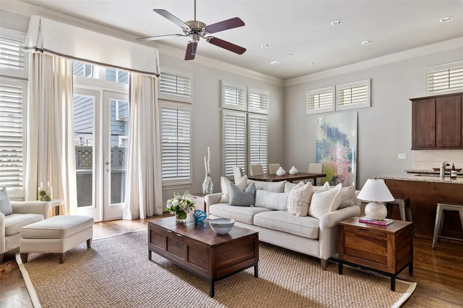 Well-maintained & situated in the middle of a manicured gated community in sought-after Shady Acres, this 3/4-bedroom single-family home is conveniently located to the Heightss best parks & restaurants. Nearby hot spots on 20th Street & blocks from Wright-Bembry Park, the home features open concept first-floor living with high ceilings & hardwood floors, multiple private outdoor spaces including an expansive third-floor rooftop terrace & newly refinished back deck. The island kitchen with counter seating & gas cooking has sizeable pantry & opens to the dining & first-floor living areas. The second-floor primary suite has seating area, dual walk-in closets, & the bath has double sink vanity, soaking tub & separate shower. Two secondary bedrooms & laundry room are also located on the second floor. A large flex room with walk-in closets & full bath has French doors that open to the third-fl...
