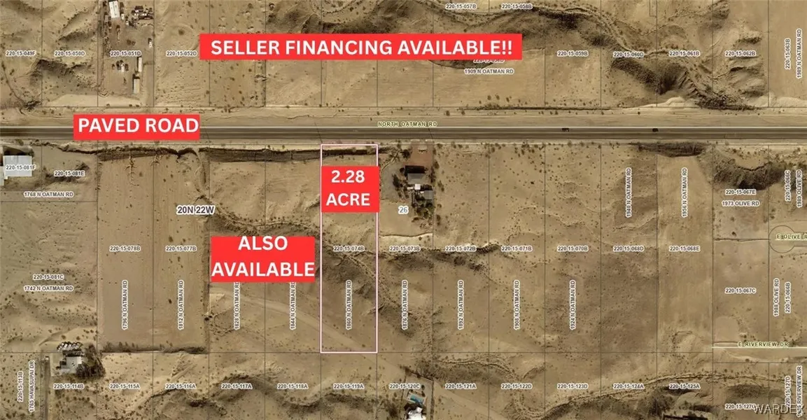 2.28 ACRE LOT ON PAVED ROAD ZONED C2 AND LOCATED IN THE HEART OF BULLHEAD CITY. ONE OF THREE LOTS LOCATED SIDE BY SIDE BEING SOLD SEPARATELY.... OR TOGETHER. ACCESS FROM BOTH HWY 95 AS WELL AS BULLHEAD CITY PARKWAY. JUST A STONE'S THROW FROM THE COLORADO RIVER AND LAUGHLIN.