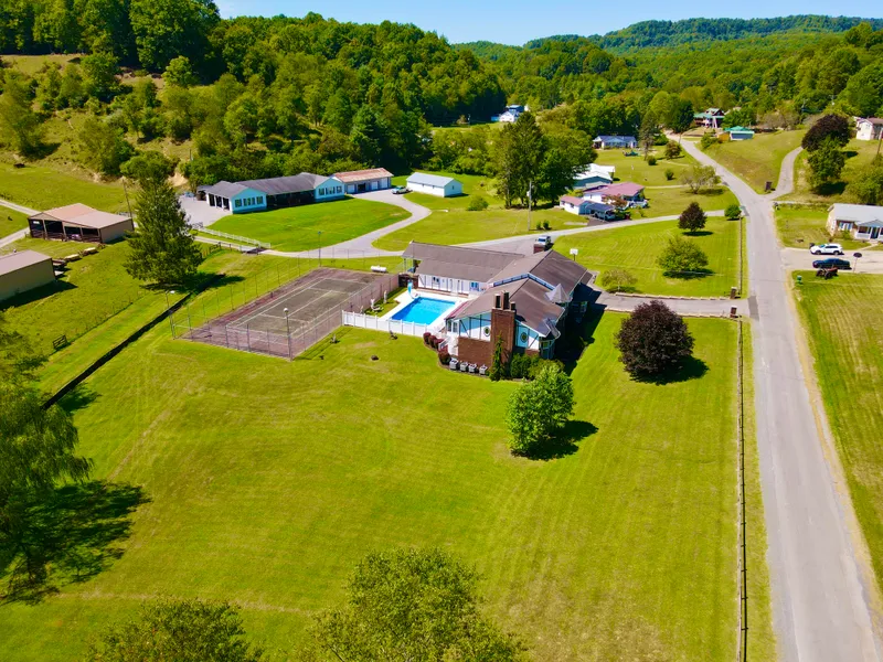 This stunning Tudor-style estate is a perfect blend of timeless elegance and countryside. The home boasts a beautiful exterior evoking classic English charm. Step inside and be greeted by a spacious layout featuring not one but two family rooms, ideal for both intimate gatherings and more casual relaxation. The standout feature is the grand room with loft with soaring 18ft. ceilings taking you into the clouds. Outside the propertys resort like style with swimming pool, pool house with steam room and tennis courts. For the car enthusiast, a 4 car heated garage, 2 car garage and a carport. Top it off with whole house generator and you have the perfect home to raise children or have a B&B. Located in ATV country, this is perfect to bring all your friends and enjoy the ATV amenities near by.