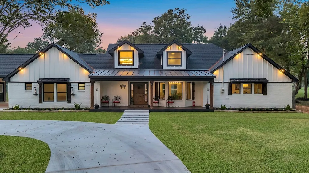 Over 2 acres surrounding this completely remodeled home. NEW PEX PLUMBING, ELECTRICAL, GAS, AC, ROOF, BRICK, AND SEPTIC. INCLUDES (REFRIGERATER/WASHER/DRYER). A wine closet makes a beautiful display entrance and warmly welcomes you and your guests into this custom designed 4 bedroom 3 full bathrooms home. In the kitchen you will have ample storage and prepping space to make cooking a delight with stainless steel appliances, a pot filler over the stove, and a modern waterfall island that opens up to the living area which makes it another space you and your family will like to gather. Rendering of pool in backyard can be built if your clients are interested. Warehouse out back is 1,721 sq ft.****SELLER IS WILLING TO EXTEND MASTER CLOSET OUT TO BALCONY OR CREATE A PRIMARY BEDROOM DOWNSTAIRS USING 2 BEDROOMS BEHIND THE KITCHEN, HOME WOULD THEN BECOME A 3 BEDROOM/3 BATHROOMS. 1 PRIMARY DOWNST...