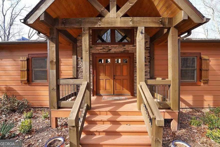 Nestled in the heart of the North Georgia Mountains, this exquisite and charming mountain home in Falling Waters hosts an unparalleled blend of luxury and nature with 2.3 tastefully landscaped acres, creek access and breathtaking views. With over 3600 sq ft of living space, each level will make your jaw drop. The main living floor includes the family room with stacked stone fireplace, chef's kitchen with custom cabinetry and stainless steel appliances, large laundry room/utility room downstairs, home office space, primary suite, plus an additional spacious bedroom and bath. On this level outside is a screened-in living space with a cozy wood burning fireplace. The terrace level is home to two large bedrooms and bathrooms, a full home gym, stacked stone fireplace, and a wet bar. Custom cabinets, granite countertops, high-end finishes and modern touches are found throughout the home. Expan...