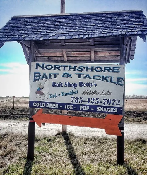 The North Shore Bait & Tackle shop is an established bait, tackle, grocery and small convenience store located at the north end of Webster Lake and adjacent to the Webster State Park. LOCATION, LOCATION, LOCATION...just off US Highway 24 at the entrance to Webster State Park along Road 9 in western Rooks County.