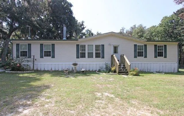 Spacious modular St. Johns River & canal front home! Bright and cheery split plan 3 large bedroom, 2 bath layout. Wood-burning fireplace in living room. Large island kitchen with lots of cabinets and counter space. Partial privacy fencing, partial chain link fencing. Two-car detached garage. Detached equipment shed. Wooden waterfront platform. Partial riverfront view.