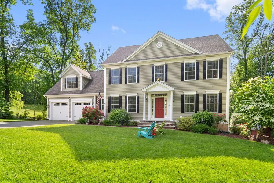 Welcome to 148 Bell Ridge-a meticulously crafted 3,700 sq ft Colonial on 2.63 acres at the end of a quiet cul-de-sac in sought-after Glastonbury. Built by renowned Bill Mandell of Mandell Custom Homes, this property combines elegance, functionality, and exceptional craftsmanship. Step inside to 10' ceilings, natural light, crown molding, and custom millwork. The main level features a spacious kitchen/family room, private office, mudroom, and formal dining room. The kitchen is a chef's dream with soft-close cabinetry, granite counters, designer backsplash, JennAir 6-burner gas stove, wine fridge, and upgraded stainless appliances. Upstairs includes four bedrooms and laundry room including the luxurious primary suite with tray ceiling, spa-like bath with double sinks and soaking tub, and custom closet built-ins with drawers. Additional bedrooms are generously sized with large closets and h...