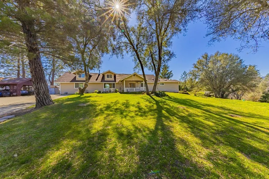 Discover this beautifully appointed 3007+/- sq. ft. custom home nestled in scenic Ahwahnee, California. This spacious 3 BD, 3 BA residence sits on a well-maintained lot w/horse-keeping potential & features a thoughtfully designed concrete driveway & manicured landscaping. The heart of the home showcases a generously sized kitchen that flows seamlessly into the living area, creating an inviting open-concept space. Soaring pine wood ceilings adorned w/skylights that flood the interior w/natural light. The living area extends to a welcoming patio, perfect for outdoor entertaining & enjoying the peaceful surroundings. The primary suite offers the ultimate in comfort & privacy, complete w/a walk-in closet & luxurious BA featuring a walk-in shower. The intelligent floor plan positions BDs on opposite sides of the home, ensuring optimal privacy. A formal dining room provides an elegant setting for memorable gatherings, while a versatile library space adjacent to the living area could easily serve as a home office. Exterior amenities include an oversized detached garage & additional outbuildings for storage or workspace needs. The concrete hardscaping around the home minimizes maintenance while maximizing functionality. Located in proximity to both Yosemite National Park & Bass Lake, this home offers easy access to year-round recreational activities & nearby conveniences. This move-in ready home combines thoughtful design, comfortable living spaces & a prime location!