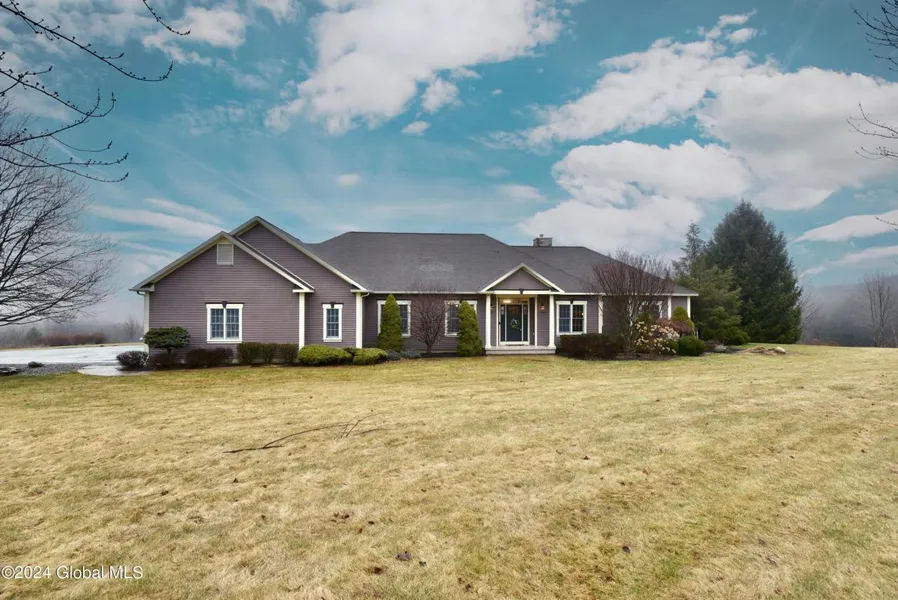 Multiple offers, highest & best offers due Monday 3/11 @ 12pm. Stunning custom 3000 sqft ranch in the exclusive neighborhood of the Meadows.Walk in to a fully open concept 1st floor with full dining room and bonus sitting room.Great room features built-ins, surround sound & vaulted ceilings. Kitchen has cherry cabinets, granite, dining nook & island. 4 large bdrms on the 1st floor and a huge primary bdrm w/ walk-in closet, updated bath w/ soaking tub & oversized tile shower. Primary has sitting area & walkout to back porch. Laundry room on the 1st floor across from another full bath.Hardwoods, custom trim & crown molding throughout.Finished basement with bdrm, full bth w/ sauna & movie theater.Walkout your back porch to your heated pool & breathtaking views of the Tomhannock reservoir.