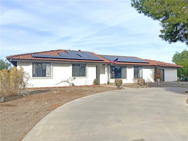 This beautiful home sits on 2.34 acres with a circular driveway leading to the front entrance where you find an expansive living room with fireplace that opens to dining area and kitchen. The kitchen has granite countertops, breakfast bar, lots of storage and a large window allowing in natural light. Off the kitchen is a large laundry room and a master bedroom with sliding doors leading outside and a master bath. The opposite wing of the home features 2 bedrooms, one full bathroom and an additional master bedroom and bathroom. There is a utility closet just outside with shelving for additional storage. The back yard has a covered patio, fenced yard area for entertaining complete with gazebo. The majority of the acreage is level, perfect for your horses, arena, barn and all your toys. There is a two car detached garage and a storage shed. Paved roads make coming home easily accessible.