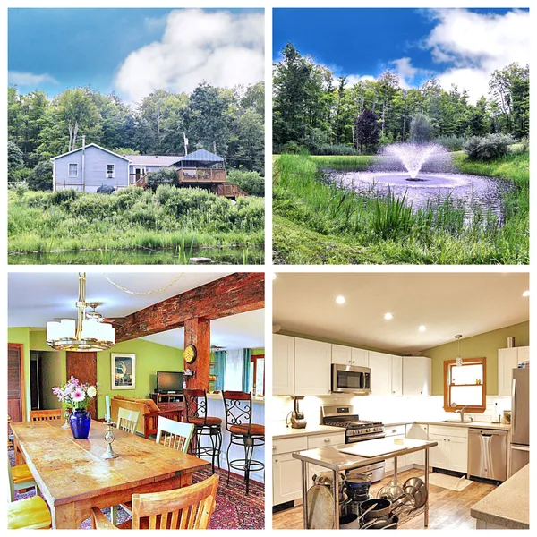 Welcome to 535 Fitzsimmons Rd., a pond-side country dwelling in tune with nature! Upon entering the house, you are greeted with a very open space anchored with massive wooden beams. Here you have well-appointed living area, dining area, and a kitchen, airy and cozy. The kitchen has an island and stainless steel appliances. A hallway leads to a generous primary suite that has a stylish en suite bathroom and a walk-in closet. Also located here are two generous bedrooms sharing a full bath. Both bathrooms have double vanities. The full basement is semi-finished with a half-bath, recessed lighting, and stone hearth providing multiple possibilities. In the main living area, there are two sets of sliding glass doors and a large window, which let in lots of natural light. One set of sliding glass doors leads to a flat, fenced yard for the beloved family dog. It is also ideal for vegetable and/o...