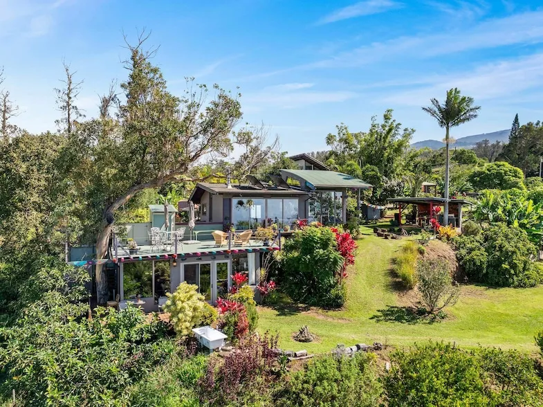 Nestled in the enchanting landscape of Olinda, this magical property is a hidden gem that offers far more than meets the eye. Your breath will be taken away once you enter the main home with floor to ceiling windows showcasing the most amazing bi-coastal views that you may ever experience. You can almost see the earth's tilt from this extraordinary location. With an architectural wonder of a main home and multiple versatile flex spaces, it caters to a variety of living options-perfect for individuals or families seeking creative havens for their agricultural endeavors or simply to retreat, relax and enjoy the nature that surrounds you. There is a newly built outdoor Cocina that sits next to a fire pit with ocean views for days. Also included on this property are covered parking, a large workshop, a perfectly situated sauna, a true farm kitchen equipped with three full-sized sinks, walk-in cooler, greenhouses, a chicken coop with lots of egg-laying girls, magical gardens throughout and more structures that offer flexible floor plans. Advanced amenities abound, including fiber optic high-speed internet, a Tesla battery charger and owned PV panels that will ensure low electricity bills and is appealing to environmentally conscious buyers. Imagine waking up to breathtaking views of Moloka'i, Kaho'olawe, Lana'i, and the majestic summit of Haleakala, all from the comfort of your home. Owned by an architect and artist, the property is infused with unique features and artistic elements. This is a Prepper's dream property. Don't miss out on the chance to create your own paradise in this stunning location. Opportunities like this are rare and fleeting! To fully grasp the unique allure and extraordinary features this property has to offer, a personal visit is essential. This is not just a home; it's a sanctuary that invites you to embrace the magic of your surroundings.