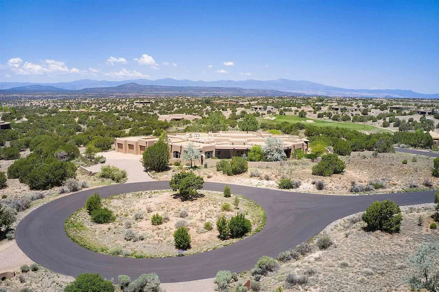 5 Nighthawk Circle is the epitome of Santa Fe lifestyle. Taking full advantage of the fabulous indoor and outdoor living that Santa Fe offers, this award winning, custom built home features extensive portals, gardens and courtyards. The expansive great room opens seamlessly to the vast rear portal with a bar and serving area and intimate seating around a traditional kiva fireplace. A true cooks kitchen is adjacent to informal eating and living spaces for intimate gatherings. A butler's pantry leads to the dining room with a traditional kiva fireplace and its own portal and patio. The expansive master suite features a seating area and fireplace. There are two additional commodious suites for family and guests. A library with custom built-ins, a media/game room and a huge office with an adjacent full bath will make anyone's wish to "work-from home" come true!
