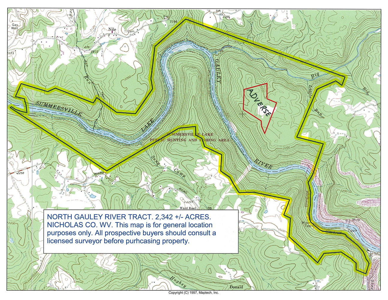 Situated 2 miles northeast of Canvas WV, near Summersville, this large, multiple-use property offers privacy, 2 miles of frontage on the North Gauley River and a mature hardwood forest with immediate timber harvesting potential. Hunting and wildlife viewing opportunities are unlimited.