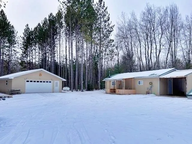 Escape to this year-round remodeled home nestled on 2+ wooded acres. And if youre looking for storage, this has 3 garages to suit your everyday needs along with a guest house! The home features an open concept KT/LR with cozy wood stove heat. Main floor BR, full bath, and laundry room. Updates over the past 5 yrs: windows, siding, GFA furnace, water heater, electrical, wood stove, cabinets, flooring, and appliances. Covered front porch. Metal roof. Newer 30 x 40 side loading 3 car det. garage, 12 x 20 1 car att. carport, and a 20 x 20 steel building. As an added bonus there is a heated 20 x 16 bar room/guest quarters. Survey on file. Enjoy the quiet country scenery on this 2.35 acre parcel that is located on a private dead-end road for seclusion.