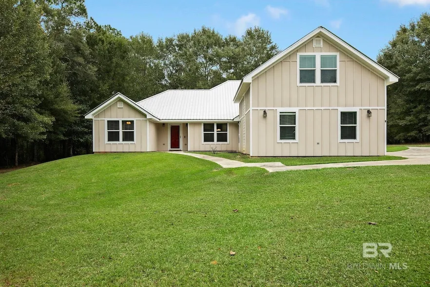 Tucked away on 2.36 peaceful acres with NO HOA, this custom-built 2017 home offers privacy, space, and timeless charm just minutes from town. With 2,386 square feet, 3 bedrooms, 2.5 bathrooms, and a large upstairs bonus room that can easily serve as a 4th bedroom, guest suite, or home office, this property delivers the flexibility today s buyers are searching for. From the moment you walk in, you ll notice the thoughtful craftsmanship throughout. Spruce shiplap walls, hickory hardwood floors, and pine ceilings create a warm, inviting atmosphere that feels both classic and comfortable. The spacious kitchen is a standout for cooking and entertaining. Features include ceiling-height hickory cabinets, soft-close drawers and pull-outs, tile backsplash, oversized pantry, and plenty of workspace. It s functional, beautiful, and designed for everyday living. The primary suite offers comfort and versatility with a large walk-in closet and an attached private room that works perfectly as a nursery, office, or sitting area. Secondary bedrooms share a true Jack-and-Jill bathroom with double vanities. Upstairs, the oversized bonus room and floored attic provide extra living and storage space rarely found. Step outside and enjoy peaceful country living at its best. The screened-in back porch is ideal for morning coffee, rainy afternoons, or quiet evenings. A fenced pet area sits beneath mature magnolia and oak trees, and the 20x40 metal building offers endless possibilities for a workshop, storage, or hobby space. This move-in-ready home combines privacy and acreage with convenience. Located just minutes from shopping, dining, and schools, and only a short drive to the beautiful white sand beaches of South Alabama, you truly get the best of both worlds. Well, cared for, full of character, and ready for its next chapter, homes like this do not come around often. All that s left is deciding where to place your rocking chairs. Buyer to verify all information during due diligence.