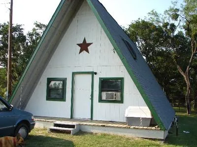 A unique A-Frame home with 2.36 acres minutes east of Comanche. Living area, kitchen, bedroom and bath downstairs on the main floor. A large loft area upstairs is being used as the master bedroom.
