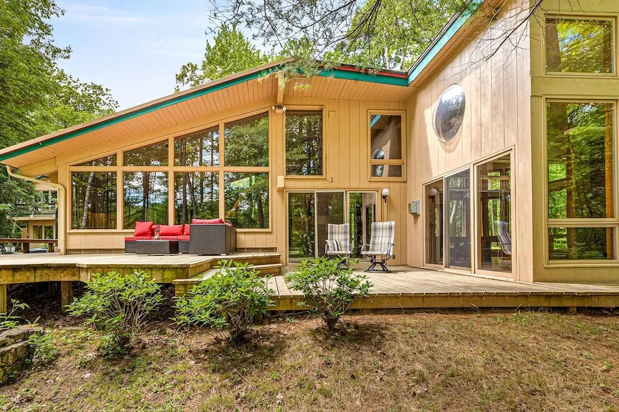 A rare architectural gem awaits you on the coveted MANITOWISH WATERS CHAIN of 10 lakes. This stunning, historic, 4BR, 3BA home blends the timeless elegance of Prairie-inspired design with the natural beauty of the Northwoods. Created by artisans with expansive windows and an open concept layout on 2.36 ac with over 568 ft of water frontage, this beautiful home invites the outdoors into everyday living. It features 5,358 sq ft of waterfront luxury, a private tennis court, dock, gourmet kitchen, expansive living and dining areas on various levels, sunlit atrium, family room loft, custom 360-degree wood-burning fireplace, loft library, workshop areas, sauna, partially finished basement, attached garage, and stand-by generator. Living spaces are enhanced by hardwood ceilings and floors with an abundance of wood accents and natural stone tile. New survey and under appraised value!