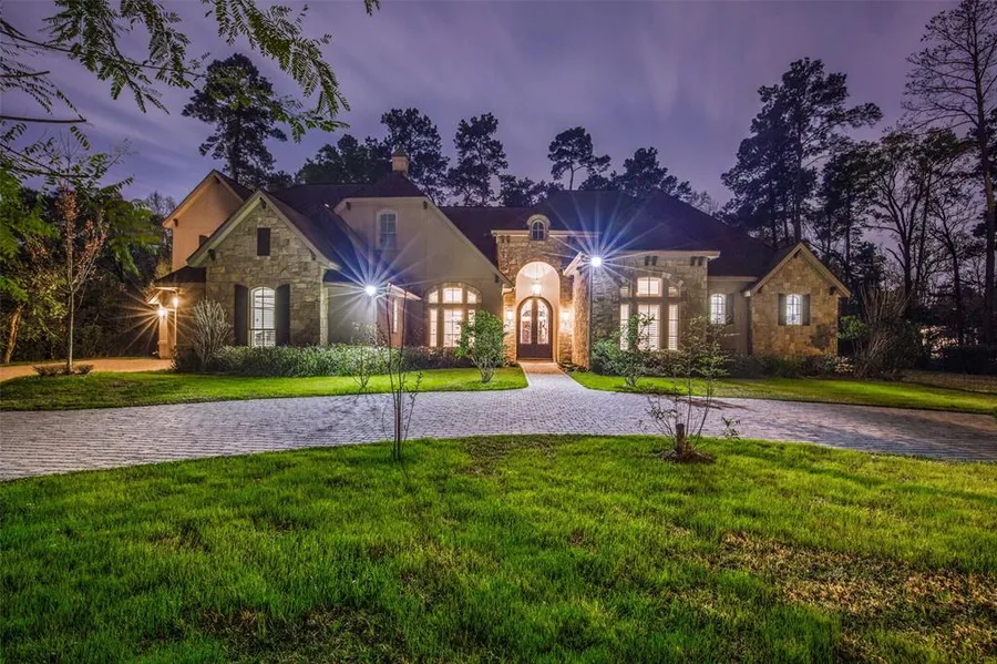 Contemporary Elegant Estate Exquisite craftmanship & sophisticated design in this custom home situated on a 2+ acre private lot. Completed in 2011, 6 bed, 6 full baths, 2 half baths, & 4 car garage w/gated circular drive. The open floor plan has natural light, Vaulted & coffered high ceilings on main floor. Entry has a steel door, marble and hardwood flrs, & walls of windows. Master & Guest suite down, formal living w/fireplace, dining rm with 12ft ceilings, private study w/built-in cabinetry, wine rm, mud rm, family rm, and kitchen on main floor. The kitchen includes custom cabinetry, a Viking range w/dble ovens, built-in frig, granite counters, large island & breakfast rm. The master includes sitting area, large bath w/separate vanities & closets, tub & a walk-in dble-head shower. All bedrooms en-suite w/walk-in closets. Entertain w/game rm upstairs, family rm down w/wet bar & covr...