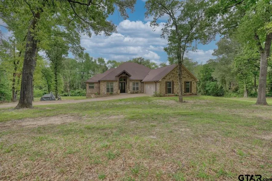 Custom home in the highly sought after neighborhood of Arbor Estates in Lindale ISD! Homes rarely come available and once you see this one, you'll understand why! Double front doors welcome you into the foyer with access to the private office and formal dining. The living room with centerpiece stone fireplace, vaulted ceilings and stunning wood floors is open to the breakfast nook. The heart of the home is this kitchen with granite countertops, stainless steel appliances; including double ovens and a gas cooktop, island, bar seating and coffee bar. The owners suite is tucked away on one side of the home with an oversized bedroom and large en suite including double vanities, walk in shower, soaking tub and walk in closet. Two of the additional guest rooms share a jack-n-jill bath and the 4th bedroom has its own private bath. The home is finished out with a half bath and large laundry. The property is over 2 acres with a peaceful view. The wood deck offers the perfect outdoor entertaining space with easy access to the kitchen. Additional features include custom trim work, 2 tankless water heaters, dual zone HVAC and so much more!