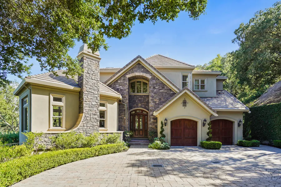 This spectacular estate, though just minutes from downtown Lafayette, commands priceless views of Mount Diablo, Happy Valley, and surrounding oak- and redwood-covered hillsides. A gated entrance from a private road leads down a cobblestone private driveway through mature oaks to the secluded estate on 2.4 (+/-) lush acres. A handcrafted ten-foot Antigua door beckons one into the 6,970 (+/-) square feet of luxurious living space. The entry rotunda lies under a twenty-foot ceiling, and a dramatic, semicircular wrought-iron staircase leads upward. Four bedrooms, each with its own en-suite bath, are accessed from the living area at the top of the stairs. The principal suite features a sitting area, adjacent den/nursery, fireplace, custom bath (featuring a large shower with three shower heads) and Jacuzzi, and two large walk-in closets with custom cabinetry. That suite offers commanding views over the landscaped gardens below (with meandering walking paths throughout) of Happy Valley and Mount Diablo to the east. French doors open to a library/office featuring mahogany cabinetry and accents under a coffered ceiling, and shuttered windows offer views of the backyard and pool. The LG-equipped laundry is conveniently located near the bedrooms. Downstairs, custom cabinetry, spacious granite island and countertops, and limestone backsplashes adorn the gourmet kitchen, which adjoins a walk-in pantry, separate butlers pantry, and a Tuscan one-thousand plus bottle wine cellar. The kitchen features Miele, Sub-Zero, Viking, and Bosch appliances, including two dishwashers. Adjacent is a spacious breakfast nook, offering 180-degree views of oaks, hillsides, and Mount Diablo. Beautiful white oak, rift-sawn floors, inlaid with Santos Mahogany hardwood, flow from the kitchen into the spacious formal dining room. Coffered ceilings provide architectural flair. Recessed lighting, or splashes of summer-evening daylight from the bay of semicircular windows, make this room a favorite for entertaining. The gracious formal living room has as its focal point a fireplace and elegant mantle. Windows display the surrounding lush landscaping and views beyond. At the other side of the kitchen, the Great Room (with fireplace) offers views of the backyard and swimming pool. An au pair/guest bedroom with full bath also is on this level, along with two powder rooms. An entertainment/billiard room, with beautiful inlaid hardwoods, completes the first floor, just steps away from the outdoor entertainment area, featuring a sport court, the pool, Jacuzzi, outdoor fireplace (under a pergola), and outdoor kitchen with a DCS grill. Two two-car garages and the driveway area provide ample parking. Nearby, a high-capacity generator provides power during any emergency; three air conditioning units assure protection against summer heat, and a private well augments the irrigation system. This estate exemplifies elegant Happy Valley living.