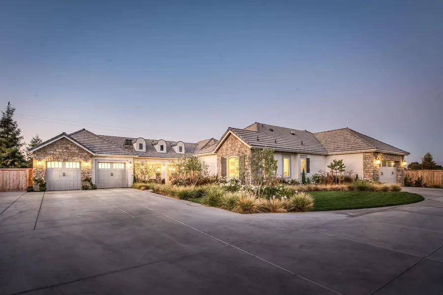 Room to breathe-private gated estate on 2.42 acre lot, located within the historic dry creekpreserve. Quietly setback over 800 ft from public roads. Property includes partial ownership ofapproximately 2.5 acre private pond full of fish, turtles, ducks,geese, and egrets which frequently presentpicturesque views. Within the enclosed pond, a large grass area provides a place of peace for relaxationor enough space to have a waterfront gathering. You will feel away from the world in your naturepreserve,and yet you are 1.4 miles from multiple desired foodie locations, city amenities and the 168freeway. The open floor plan is perfect for entertaining and enjoying family time within the great room,dining room, game/theatre room and large outdoor courtyard. The kitchen will delight the chef with a 48''wolf double oven range, 6 burners and a built in griddle. Separate subzero refrigerator and freezerbuilt into custom cabinetry. Quartz countertops throughout the entire