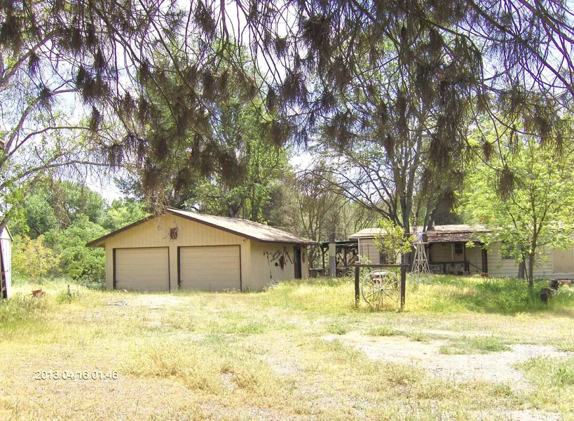 CONTRACT PENDING Secluded and private location with large oaks and usable land. Double wide mobile with detached 2 car garage and RV cover. Creek frontage along Sand Creek. Property needs some TLC and a cash buyer. Appointments Only.