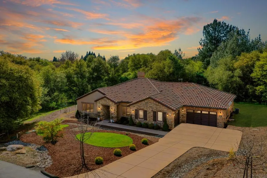 This custom-built home has been crafted to be a private-feeling, staycation retreat with functional design and luxurious upgrades. Working from home is a beautiful and productive experience. The Owner's Suite overlooks a peaceful and quiet-feeling green space, while the front of the home has mountain-lined views. The Chef's kitchen details an expansive island for bar-area seating along w/granite counters complimented perfectly by the rich tones of the Alder cabinetry. The family room boasts a stunning stone fireplace overlooking a gorgeous covered patio + backyard. The home does have owned solar (8.25kW - 33 panels - currently no PG&E bills with two occupants), three bedrooms with an en-suite set-up, dual-zone HVAC, imperfect smooth walls, hardwood flooring, low-E windows, upgraded Douglas window coverings, three-car garage (2/1 set up), wine storage, energy-efficient and safety upgrades, an expansive laundry room, a custom-built Owner's closet with organizers, and fruiting trees with irrigation. Seller did get approved for a pool - but no formal plans were retrieved. You'll love having a larger green-space (less yard maintenance) for improved privacy. The community of Calabria features larger lot homes and it is not a large development - a luxurious and intimate neighborhood experience. Nearby outdoor activities: you're close to Folsom Lake (boating, fishing, camping, picnic, etc), multi-use trails, cyclist routes, equestrian trails, great local shopping and dining, vineyards + wine-tasting rooms, local breweries, flower farm, numerous local farms, and so much more. Newcastle is an amazing place to call home - country setting but not too far from all that you need. An hour or so to Truckee and close to Roseville and Rocklin shopping. Welcome home.