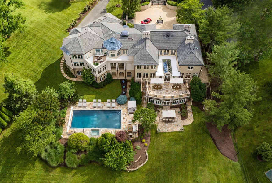 Welcome to this exquisite gated compound located moments outside of Washington in Bethesda, Maryland. Deceptively ample in scale, and tucked away on a private cul-de-sac in the premier residential enclave of The Greens, one of Montgomery County's most sought-after neighborhoods. Beyond the gates sits a circular arrival court and three-car garage parking. Intricate iron and glass entry doors welcome guests to a sun-drenched center greeting hall with soaring ceilings centered by breathtaking floor-to-ceiling windows and skylights overlooking the grounds and golf course. Spanning 19,000 square feet with seven bedrooms, eight baths, and three half baths - the newly updated interior includes dramatic entertaining areas with a three-story spiral staircase, gourmet kitchen, living room, dining room, and fully-equipped Butler's pantry. Other features include an elevator that serves all three lev...
