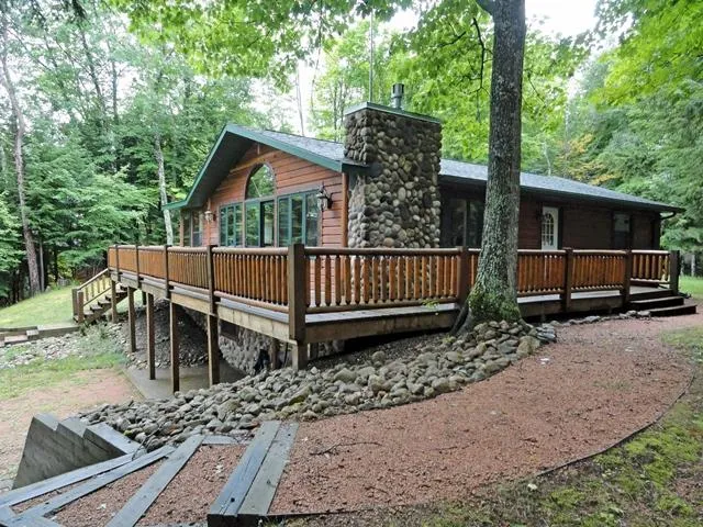 Beautiful home overlooking Two Sisters Lake featuring approximately 140 feet of sandy frontage. This home features three bedrooms, two bathrooms, a sunroom, and a partially-finished lower level. The home is completely remodeled and will provide you with the Northwoods atmosphere on a spectacular lake that everyone is looking for. The living room offers an open-concept design with a stone fireplace, cathedral ceilings, and patio doors leading to a large deck overlooking the lake. The lower level includes a walkout to the lake where you will enjoy the nice landscaping, patio, fire pit, and pier. This 2.41-acre wooded property is a must see!