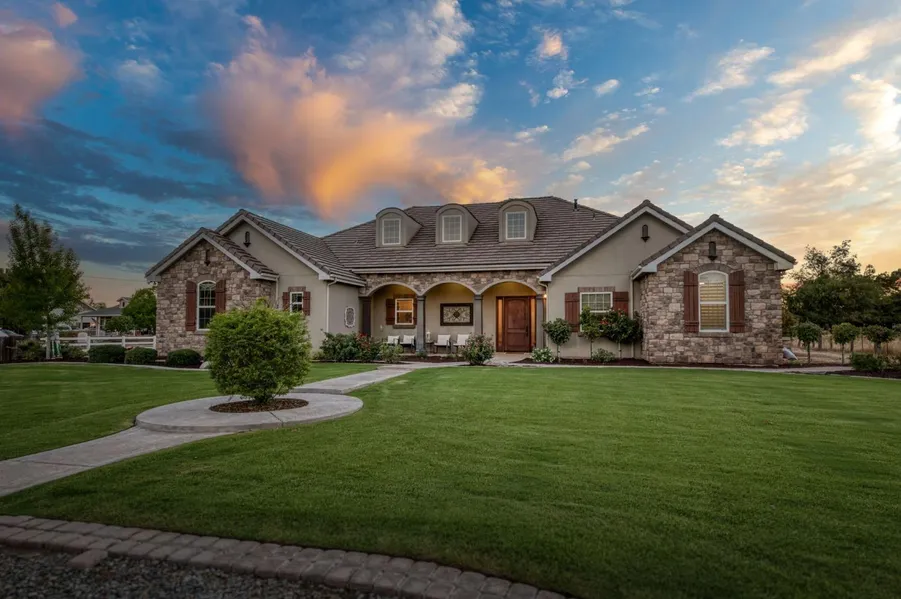 Stunning custom home on 2.42 acres. As you drive up you will have plenty of parking with the circular drive in the front and an access drive on the side. Stepping inside this beautiful home, there are high ceilings, hand scrapped hardwood flooring through most areas, and plenty of room to move about. The kitchen is a cook's dream, with granite counter tops, a large center island, an eating area, soft close drawers and a pantry. The living room has views of the back with a gas fireplace for those cozy nights. One bedroom is isolated off the kitchen along with a full bath. On the other side there is the master retreat. The master has plenty of windows to let in natural light and this room also has access to the back patio. The master bath has dual sinks, soaking tub, shower and a nice sized closet. There are two bedrooms facing the front of the home (one is being used as an office). Upstairs is the other master suite that has views of the back as well. The backyard is a place to entertain with a covered patio, large grassy area, gazebo and a sparkling pool. There is another home by the pool with concrete floors. This home has one bedroom and two baths with a full kitchen. This one is very unique and has views of the backyard and pool area. There are also chicken coops, a stall barn, shop, shed, and pasture areas. This home has so much to offer inside and out. The sellers have done a wonderful job of care and maintenance they would like you to come by and see this one today!