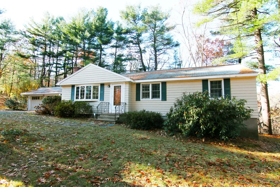 Waiting to be discovered, a spacious Ranch set on a fabulous 2.42 acre wooded spread in the desirable Meadowbrook area. The open, airy layout includes 6 rooms and 2 baths at the main level. The bright, fireplaced living room is open to the spacious dining room with its spectacular views of the private property and winding Shawsheen River beyond. With the exception of the large picture window, most windows at the 1st level are by Andersen. Ample, skylit kitchen with granite counters, lovely hardwood floors, and 2 double closets in the master bedroom. At the lower level, an inviting family room with built-in cabinetry and a cubby study too! Oversized breezeway leads to attached 2-car garage. Convenient to all major routes.