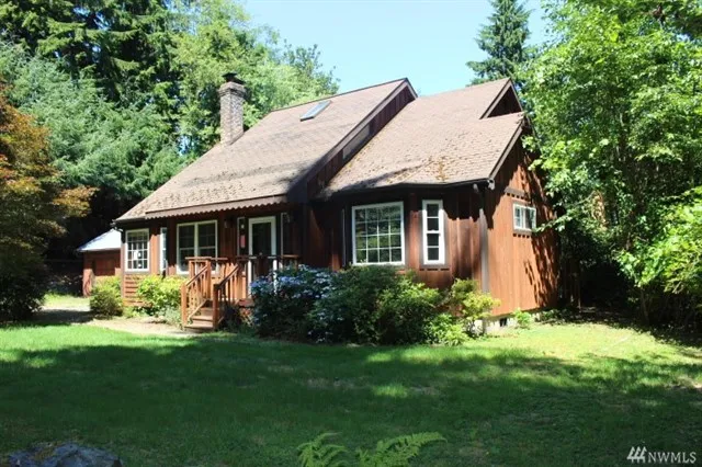 greets you with it's cabin style feeling & beautifully landscaped front yard. There's a detached 2 car garage with shop