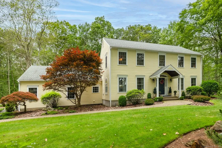 Elegant Saltbox Colonial in Sought-After Middlebury, Nestled on 2.44 secluded acres, this tasteful saltbox colonial boasts park-like grounds with a private, tree-lined driveway leading to professionally landscaped gardens. Enjoy blooming trees and bushes from spring to fall, creating a picturesque setting. Outdoor living is enhanced with a slate patio, built-in barbecue, and bocce court, perfect for entertaining. The chef's kitchen features an island and opens to a bright family room for effortless gatherings. The expansive living and dining room combination provides elegant space for hosting. The primary bedroom suite offers a walk-in closet and dressing area, and a remodeled bath with steam shower while two additional bedrooms share a full bath. A finished lower-level bonus room provides extra living space and abundant storage. Never worry about storms this home features a whole house generator. Experience refined country living in this desirable Middlebury location!