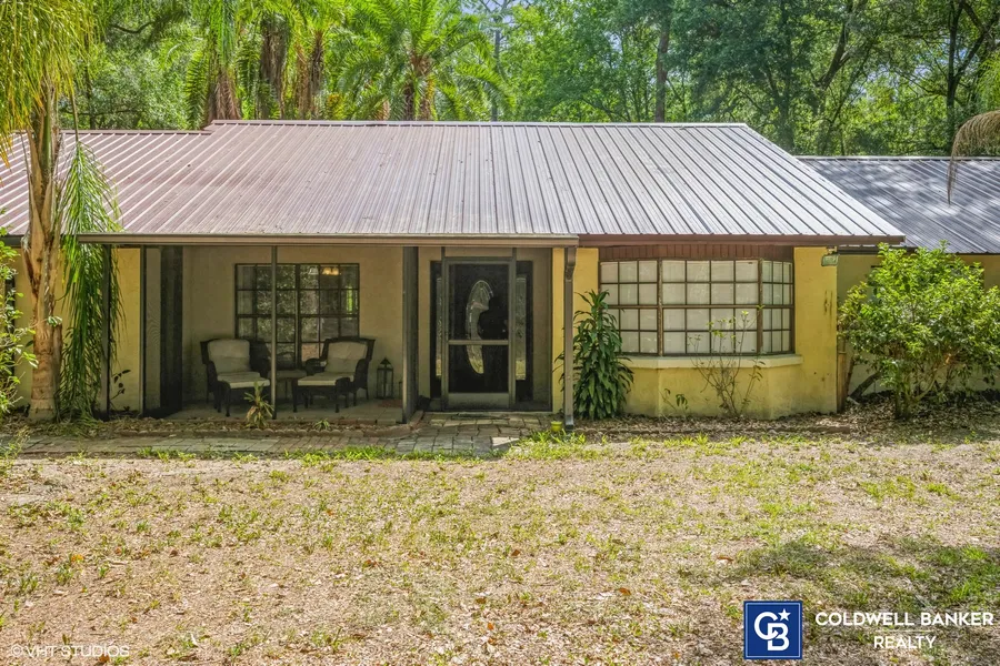 Welcome Home! Don't miss out on this serene home in the country! This 3 bedroom 2 1/2 bathroom home sits on a beautiful, 2.44 wooded acre lot near Dade City. This property is idea for the buyer who is looking for a quiet area with loads of trees and shade. The property is zoned for Agriculture use. An impressive, gated entrance and there is plenty of parking for your trucks, RV and more. Enter the home through a lovely stained glass door which leads you into the foyer. The country style kitchen with stainless steel appliances has a perfect footprint to create wonderful homecooked meals. The separate dining area overlooks the nice, tree shaded backyard, great for outdoor entertaining family and friends. In addition to a formal living room, double French doors in the family room lead onto a pretty, screen enclosed ,brick patio. This home has three large bedrooms PLUS an office, a spacious utility/laundry room and game room. Outside there are additional outbuildings including a work shed. NO HOA! NO CDD! Plenty of room...if you like country living, this is your FOREVER HOME!