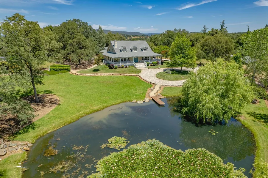 A chance at your own Homestead. Make an offer on this Character-rich Classic Ranch oasis south of Grass Valley with a twist of Victorian Style! Lush 2.43 acres, park-like setting. Very Spacious living, 3 beds, 3 baths. Imagine arriving at your park-like oasis. Inside, discover incredibly spacious living with 3 beds, 3 baths. Host legendary gatherings in the expansive kitchen & private bar, plus eat-in kitchen & large dining! Work or unwind in the grand den/office with built-ins & future growth potential with the nearby full bath. Car enthusiasts, prepare for paradise: an AMAZING 8-car garage (6+2 tandem)! Plus, a 2-story barn with wood stove! & RV parking. Enjoy bass fishing in your serene flowered pond. Fully fenced, irrigated grounds with automated gate & circular drive. (For you city folk, irrigation water is untreated flat rate water). Home has well drinking water with an underground holding tank. Back inside don't miss the Walk-in closets in each bedroom, an oversized pantry & dumb waiter, 2 HVAC units. A Quality 2x6 home build with wrap around porch & windows for every view of that porch. Horses or other animals are welcome on this agricultural parcel too! Your private haven awaits! See video. Pictures do not do it justice!