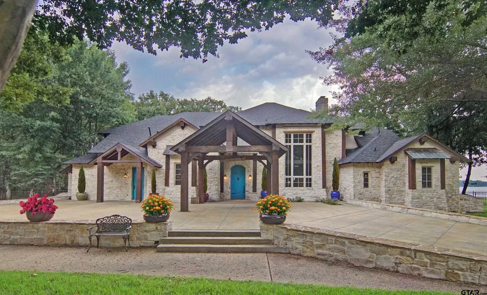A lifestyle of casual elegance defines this stunning custom lakefront estate inside the prestigious Links at Land s End on world-famous Lake Fork. Quietly tucked away with its own private entrance, this one-of-a-kind property offers a serene sanctuary surrounded by beautifully landscaped grounds, majestic oak trees, and abundant wildlife. The home s dramatic great room is the heart of the residence, boasting a soaring 20-foot ceiling, massive wood-burning fireplace, and floor-to-ceiling windows framed by 16" white oak and red oak timbers shipped from Washington State. From here, breathtaking panoramic views of the lake, the multi-tiered deck, and the property s 1,150 feet of shoreline unfold in every direction. The gourmet kitchen is a chef s dream, designed to accommodate entertaining on any scale with high-end appliances, granite counters, custom cabinetry, and walk-in pantry. Your guests will find comfort in three private ensuites; each designed for relaxation and privacy. Outdoor living is equally exceptional, with a multi-level deck highlighted by a stone-bordered pond... a gas fire pit, and endless views of Lake Fork. The short pier and private boat launch give direct lake access for fishing, boating, and sunset watching.... part of everyday life. Two oversized garages... one provides room for vehicles, equipment, and golf carts... the second garage boasts two drive-through bays leading directly to the launch. Additional features include a whole-house water filtration system, surround sound, large safe, and smart design for effortless living. As Members of The Links at Land s End... residents also enjoy access to one of the top-ranked golf courses in the country, a community pool, clubhouse, and on-site dining at Jackie s Pub. Built for both grand entertaining and private escapes, this custom home offers a rare combination of craftsmanship, natural beauty, and resort-style amenities. If you ve been searching for the perfect Lake Fork lifestyle, you ll find nothing better!