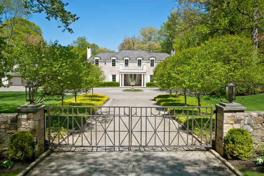 Gated drive opens to this majestic mid-country estate just off of Round Hill. Over 2.4 acres of lush landscaping, flowering trees, and gardens surround the completely renovated home. A gracious 2 story entry welcomes you to a classic floorplan with grand scale rooms and custom millwork. Large eat in kitchen, family room, dining room, and living room all open to the veranda for seamless indoor/outdoor living. Elegant paneled library with wet bar and movie screen for nights in. First floor master suite, plus 5 additional bedrooms on the second level. Oversized home gym with climbing wall perfect for the workout enthusiast. Step outside and embrace tranquility on your multi-level limestone patios or in the stunning pool with spa all fully fenced and tree-lined to guarantee privacy.