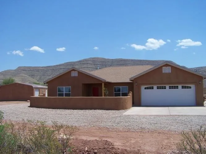 This is a beautiful custom built home on approx. 2 1/2 acres. Open floor plan with a sunken formal living area and a sunken family room. Large open kitchen with tile counter tops, pantry and stainless steel front appliances. Large bedrooms with a half bath for guest, a second bathroom and a master bathroom. True french doors on the master suite lead out to the backyard with an open patio. The large utility room opens into the spacious garage. Covered patio & open patio in backyard with wonderful views of the Tularosa Basin from the deck.