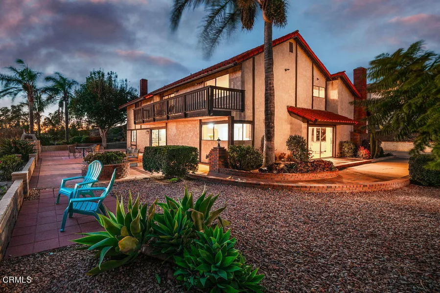 Gorgeous Sunsets, Amazing Views, Privacy and Quiet surround you as you relax and enjoy this beautiful property. Located on 2.4 acres with Avocados, Oranges and other fruit trees, this 'Devonshire Model' home features a large living room w/vaulted ceilings & fireplace and formal dining room which looks out to eastern views. Large open kitchen with granite counters looking to big family room with fireplace and both look to beautiful western and southern views. There is even ocean and island views. A downstairs bedroom and bathroom with separate laundry room. The upstairs HUGE main bedroom with walk-in closet, ensuite bath w/separate shower and soak tub and outdoor view deck. Two other guest bedrooms and guest bath. AND a HUGE bonus room with sink that could be a media/play area or another bedroom. 3 car attached garage and parking for at least 6 cars (or more). Home is surrounded by a spacious flat yard that would be great for entertaining or possibly a pool. Property runs from Heatherton to Frost Lane and encompasses approx 2.4 acres with avocado, orange and a variety of other trees. Home is located on a quiet and private lane where privacy is at a premium. Zoned for horses. The possibilities are endless for this property. Plus, you are only minutes away from Camarillo shopping, Starbucks and restaurants. A wonderful rural community with nearby conveniences and near highways and byways.