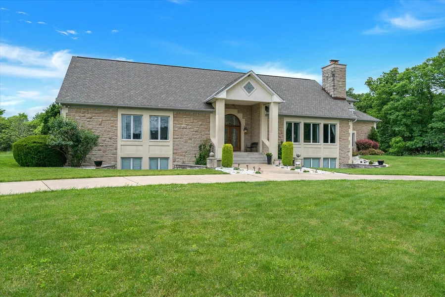 Located in a quiet neighborhood with sidewalks and easy access to many options for shopping, dining, and recreation, this spacious and inviting trophy home makes a statement. Set on an approximately 2.75-acre lot with a private backyard that includes a covered back porch and an established grassy area, the residence boasts a distinctive limestone exterior, hardwood and granite floors, volume ceilings and a seamless, open plan. With a governor’s driveway, a two-story foyer, a living room with a fireplace, and a separate dining room with cathedral ceilings, the home is perfect for grand-scale entertaining. Open and bright, the home includes an office with French doors, a bespoke gourmet kitchen, and an expansive family room, which is filled with light by numerous large windows, multiple skylights, and glass doors that connect to the backyard. The stylish, eat-in kitchen is a highlight of the well-conceived floor plan. Features include granite counters, custom white cabinetry, two sinks, a center island with counter seating, a breakfast nook, and high-end appliances, including a gas range and dual ovens. An elegant revision of the classic ranch-style home, the residence was built in 2003 with superior attention to detail, large secondary bedrooms with en suite bathrooms, and most of the living areas conveniently located on the main floor, except for a large upstairs bonus room/fourth bedroom. Certain to impress, the primary bedroom boasts a spacious retreat, dual vanities, a jetted tub, and a large walk-in shower with a glass enclosure. Other highlights include a private patio, a laundry room, a four-car garage, and a basement that could easily transition into a custom wine cellar. With a premium Adams Township location and a refined interior of approximately 5,500 square feet, this sophisticated luxury home offers something for everyone.