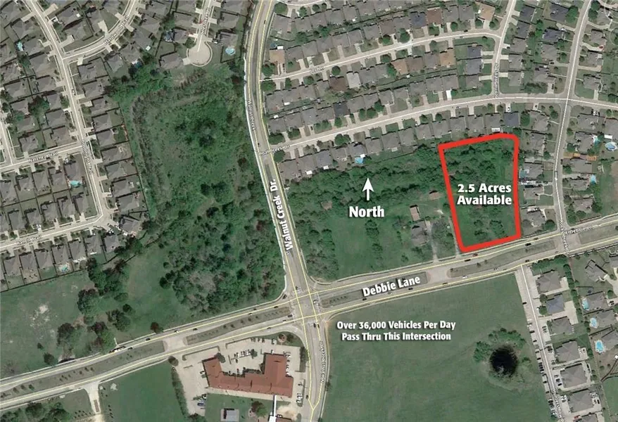 Debbie Lane and Walnut Creek Dr. are two of the busiest thoroughfares in the rapidly growing city of Mansfield. Traffic count is approx. 36,000 VPD at this intersection and the tract is surrounded by affluent rooftops. Tract has approx. 250' of frontage on Debbie Lane and is 375' deep.