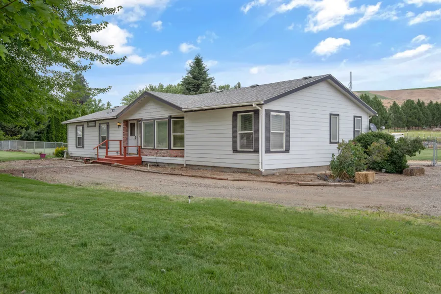 Welcome to this exceptional property nestled on 2.50 acres of meticulously cared for land, offering a serene and picturesque setting. This well-maintained manufactured home boasts a comfortable and spacious living environment, perfect for those seeking a peaceful retreat. The home itself features vaulted ceilings that create an open and airy ambiance throughout. The large open kitchen great room design provides ample space for entertaining guests and enjoying quality time with loved ones. The generously sized master suite offers a private and relaxing haven, allowing you to unwind and rejuvenate after a long day. For those with a passion for hobbies or tinkering, the40X28 finished shop is an absolute dream. This heated space includes compressed air line plumbing, making it ideal for woodworking, car enthusiasts, or any other projects you may have in mind. Nature enthusiasts will appreciate the shared irrigation system sourced from the nearby Yakima River, ensuring lush greenery and providing the perfect opportunity for animal lovers to raise and care for their cherished companions. Situated adjacent to the renowned Red Mountain AVA, this property offers a haven for wine enthusiasts. Immerse yourself in the world of viticulture and enjoy the convenience of being in close proximity to esteemed wineries and vineyards. With countless possibilities, this property truly is a blank canvas awaiting your personal touch. Explore the detailed photography, video, virtual tour, and captivating drone shots to get a closer look at the endless potential this property holds. Don't miss out on the opportunity to own this remarkable home and create a lifestyle that seamlessly combines tranquility, convenience, and endless possibilities. HVAC system updated in 2021.