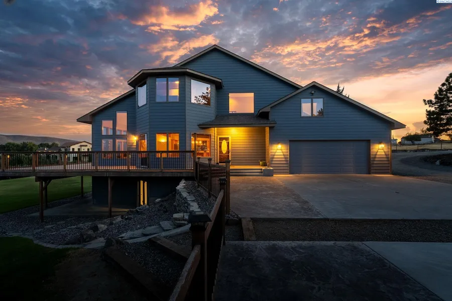 MLS# 286313 Nestled at the end of a quiet private road, this beautifully updated 3,366 sq. ft. home sits on 2.5 fenced acres with stunning panoramic views and a serene sense of privacy-just minutes from all that West Richland offers. Inside, sunlight floods the open-concept main level, where warm hardwood floors, granite counters, and stainless appliances create a timeless and welcoming space. The kitchen, dining, and living areas flow seamlessly together, perfect for gathering, entertaining, or simply savoring quiet mornings with coffee and a view. Step outside to the 1,300+ sq. ft. wraparound porch to take in the ever-changing landscape‹”from vivid sunrises to glowing sunsets. Upstairs, the primary suite feels like a private retreat with vaulted ceilings, expansive picture windows, and breathtaking views. The spa-inspired bath features a freestanding soaking tub, walk-in glass shower, dual vanity, and custom closet system. A nearby bonus room makes an ideal office, nursery, or cozy den. The daylight basement includes three bedrooms, a full bath, and ample storage, offering flexible living space for family or guests. A fully self-contained in-law suite provides exceptional independence with its own private exterior entrance, along with a kitchenette, full bath, and laundry- ideal for multi-generational living, long-term guests, or potential income. Outdoors, enjoy a thriving edible landscape with fruit trees (apple, cherry, pear, plum, apricot, elderberry), grapevines, and raised garden beds. Additional features include a basketball court, chicken coop, shed, and storage barn. The impressive 40Á—60 heated and insulated shop offers 16' sidewalls, two 12Á—14 overhead doors, loft storage, 200-amp panel, and two RV hookups‹”perfect for business, hobbies, or travel enthusiasts. Major systems- roof, HVAC, septic, water heaters, well pump, filtration, lighting, and appliances have all been thoughtfully updated. This property embodies the best of modern comfort, quiet luxury, and country charm. Come experience 3107 Mount Adams View Dr., where every day feels like coming home.