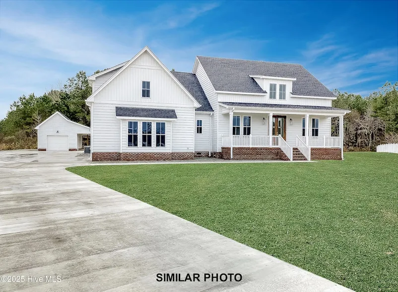 TOO BE BUILT Applewood model on 2.5 acres.A ranch home nestled on a beautiful 2.5 acre lot. Luxurious finishes, including Santa Fe doors, seamless gutters, and a fortified roof for added durability. A Primary suite on the first floor boasts an ensuite with double vanity,separate tile shower and soaking tub. A spacious laundry room on the first floor for convenience. Off the covered front porch enter into into the foyer. The dining area is to the right in this open concept featuring a Great room with an electric fireplace .The Kitchen. boasts of a large island surrounded by soft close cabinets and drawers.The pantry is amazing. French doors leads to the covered rear patio overlooking the backyard. Detached 14x28 garage with electric.