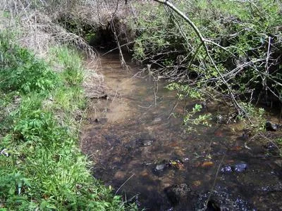 Unrestricted creekfront property, perfect for RV or mobile home, paved road frontage. Power available.